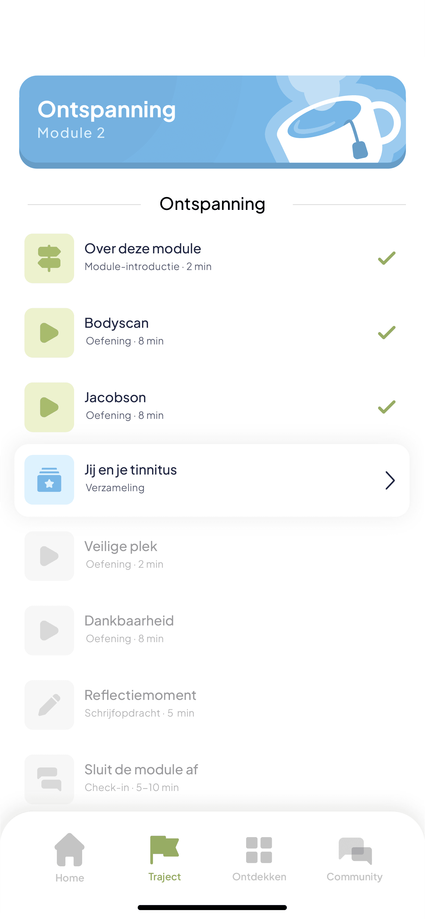 Tinzo helpt je stap voor stap meer rust en grip te krijgen, met een persoonlijk traject, oefeningen en heldere uitleg die bij jou passen.